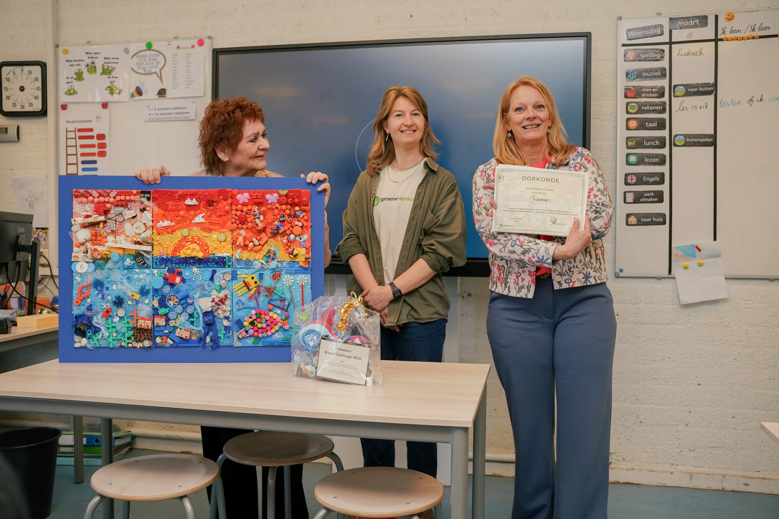 Op woensdag 18 maart vond op Basisschool De Linq in Nieuw-Vennep de feestelijke prijsuitreiking plaats van een bijzondere kunstchallenge rondom duurzaamheid en zwerfafval. Groep 8 van de school wist, samen met vijf andere deelnemende klassen van verschillende scholen, indruk te maken met creatieve kunstwerken gemaakt van afvalmaterialen.